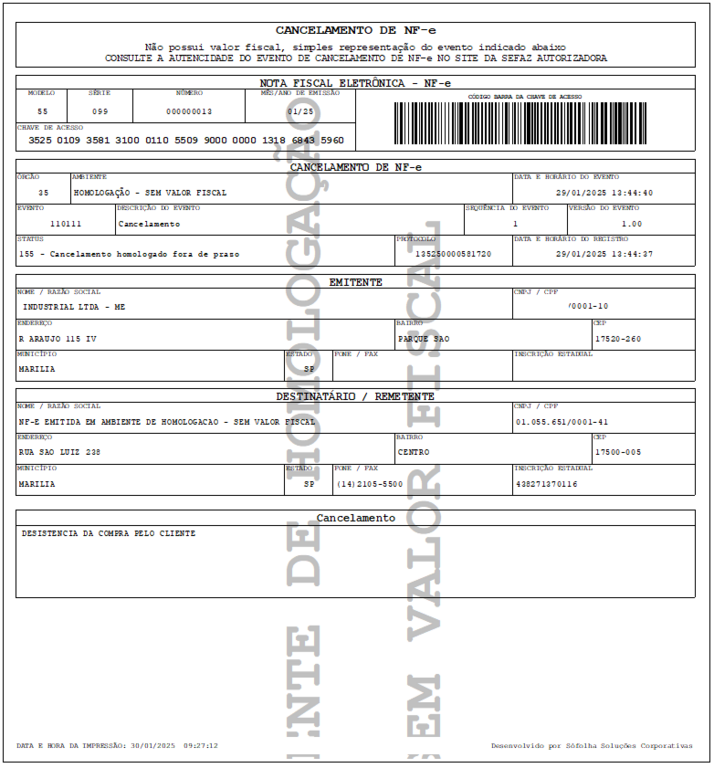 Módulo Emissor NF-e Emissão de Documentos Fiscais Cancelada