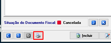 6. Para imprimir o Cancelamento da Nota Fiscal Eletrônica, clique no ícone da impressora no canto inferior esquerdo;