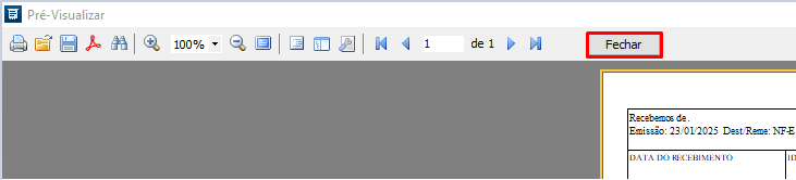 8. Inicialmente será gerado o DANFE da Nota Fiscal Eletrônica, clique em "Fechar";