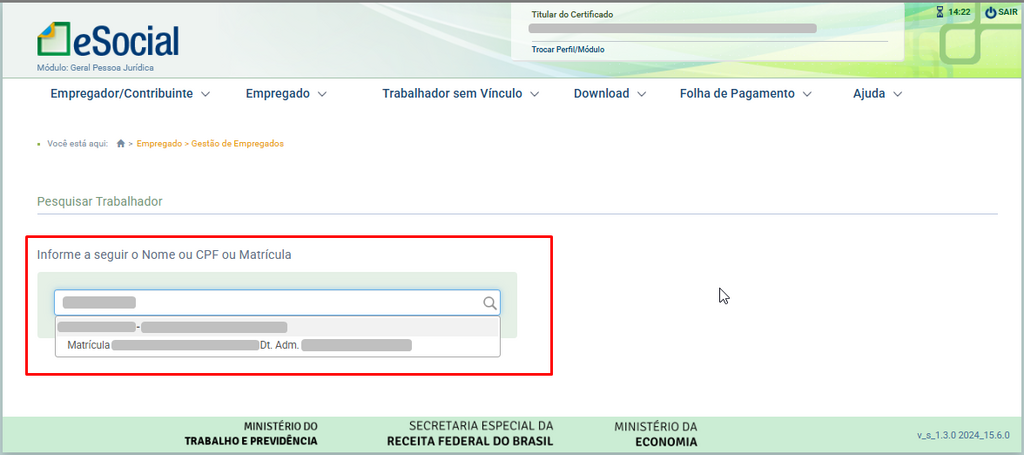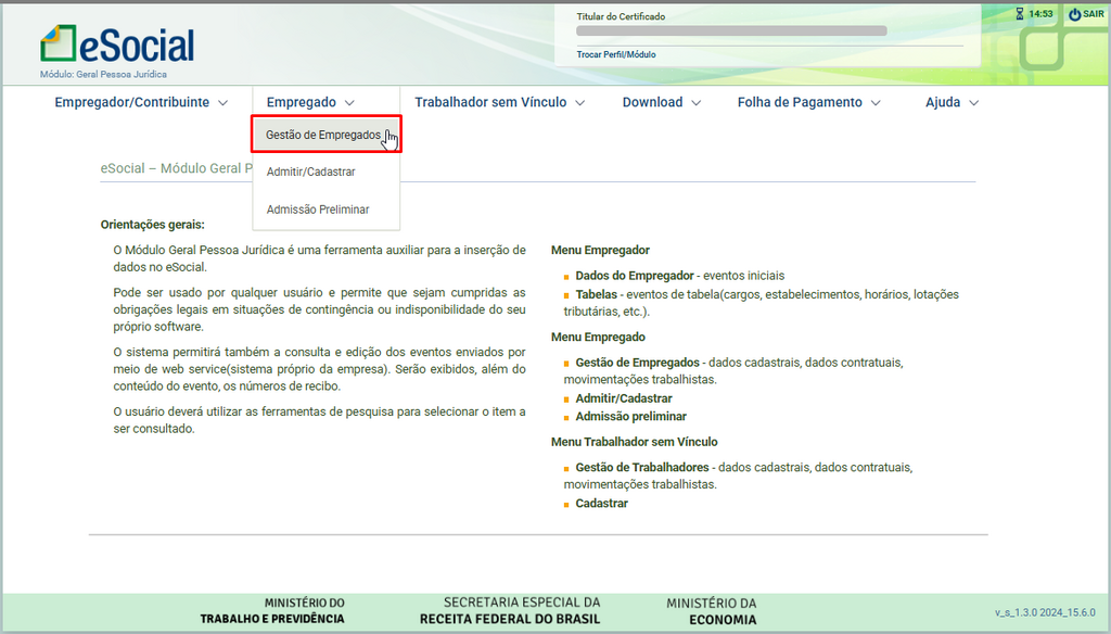 - Acesse o Portal do eSocial e navegue até o menu: Empregado > Gestão de Empregado.