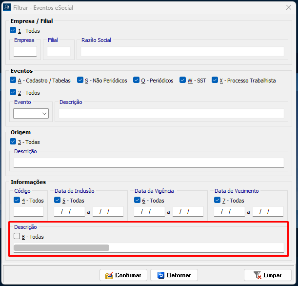 1. Filtrar os eventos transmitidos ao eSocial: