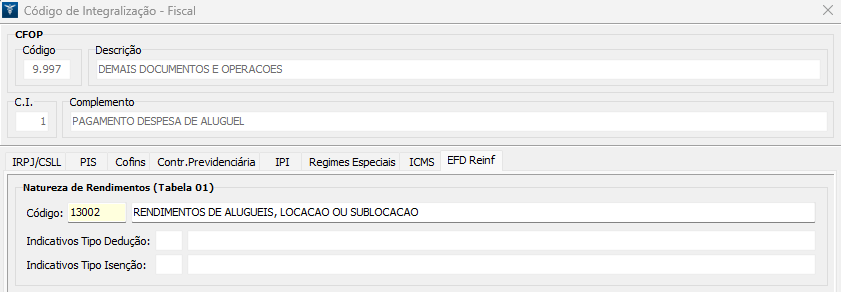 Como cadastrar a Natureza de Rendimento no Código de Integralização - EFD Reinf Série 4000