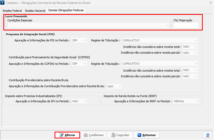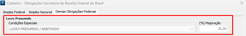 Como corrigir o erro no campo Condições Especiais - Lucro Presumido/Arbitrado
