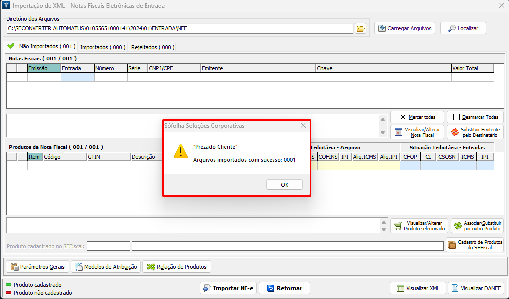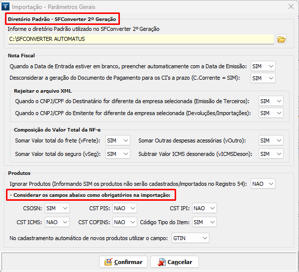 5. Para os clientes que utilizam o SFConverter2 para a busca automática do XML de entrada, o caminho será apresentado para configuração;