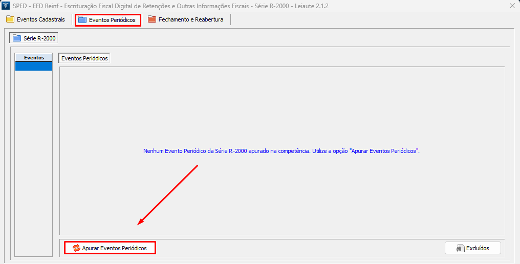 7. Na palheta Eventos Periódicos, clique em Apurar Eventos Periódicos;