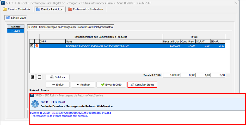 Para enviar o evento R-2050, siga os procedimentos abaixo: