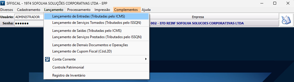 3. Na tela principal do sistema, acesse o menu Lançamento > Lançamento de Entradas;