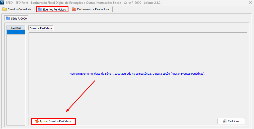 7. Na palheta Eventos Periódicos, clique em Apurar Eventos Periódicos;