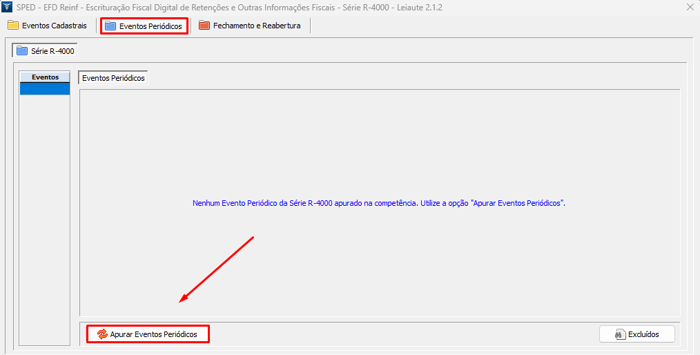 5. Na palheta Eventos Periódicos, clique em Apurar Eventos Periódicos;