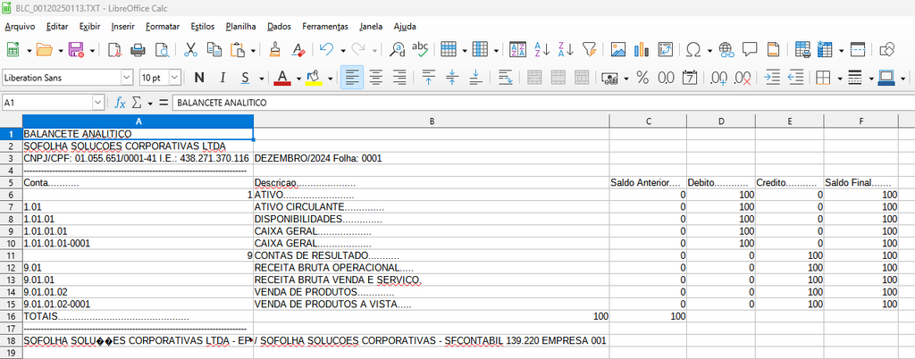8. O arquivo será importado/carregado e poderá dar continuidade diretamente no programa de planilha eletrônica utilizado.