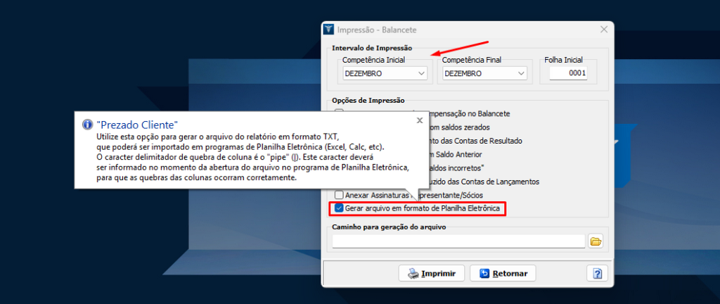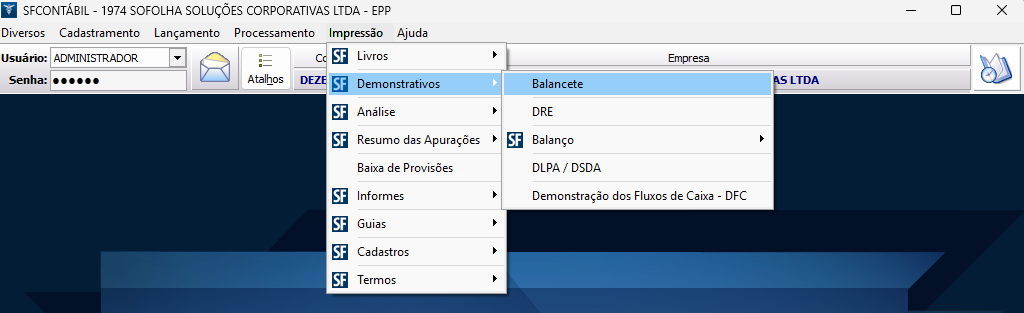 2. Ou também, Impressão > Demonstrativos > Balancete;