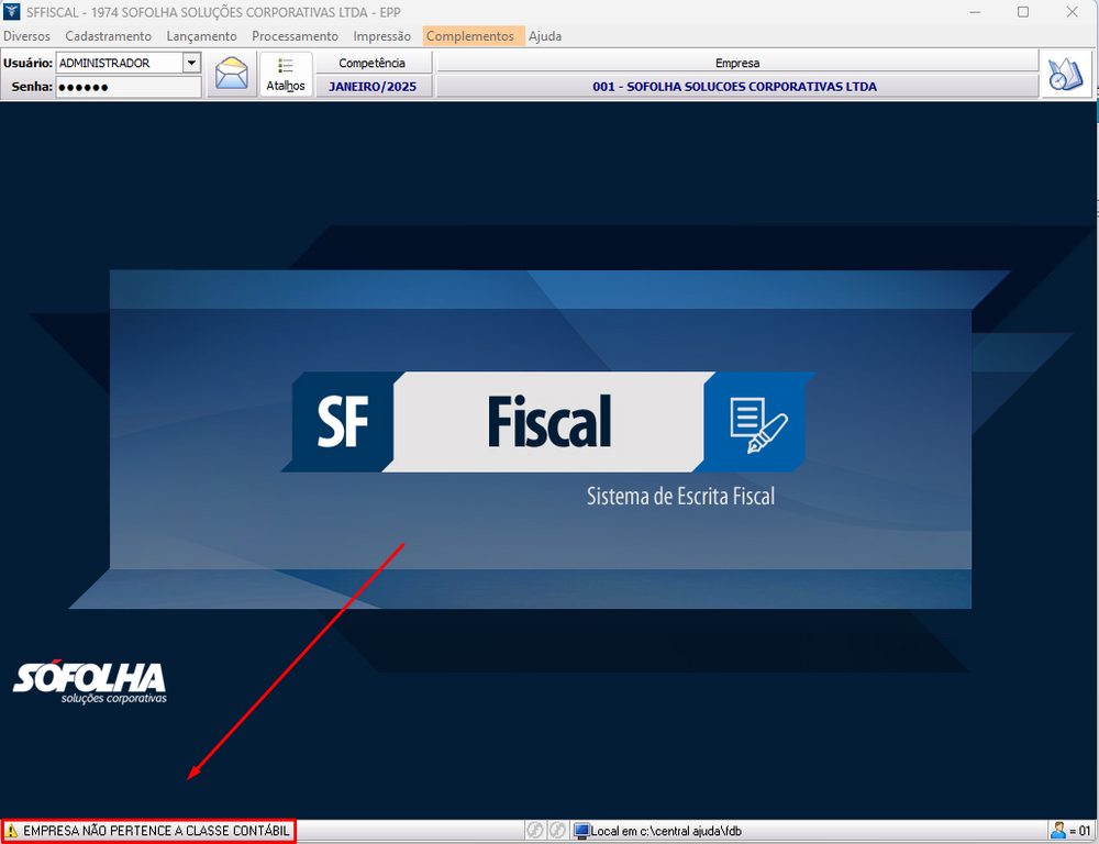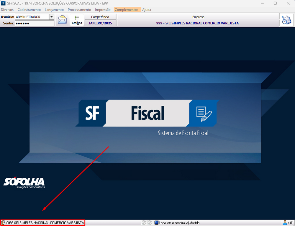 A mesma identificação é possível através da opção Consulta Empresa, ao pressionar a tecla F10 na tela inicial do sistema. Observe a empresa em destaque.