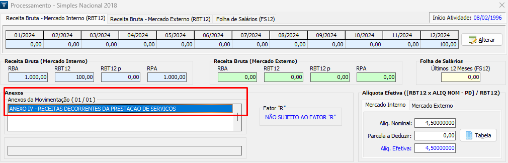 8. Após, acesse a Apuração do Simples Nacional reprocessando as informações, o anexo/segregação será apresentado de acordo com a movimentação da empresa.